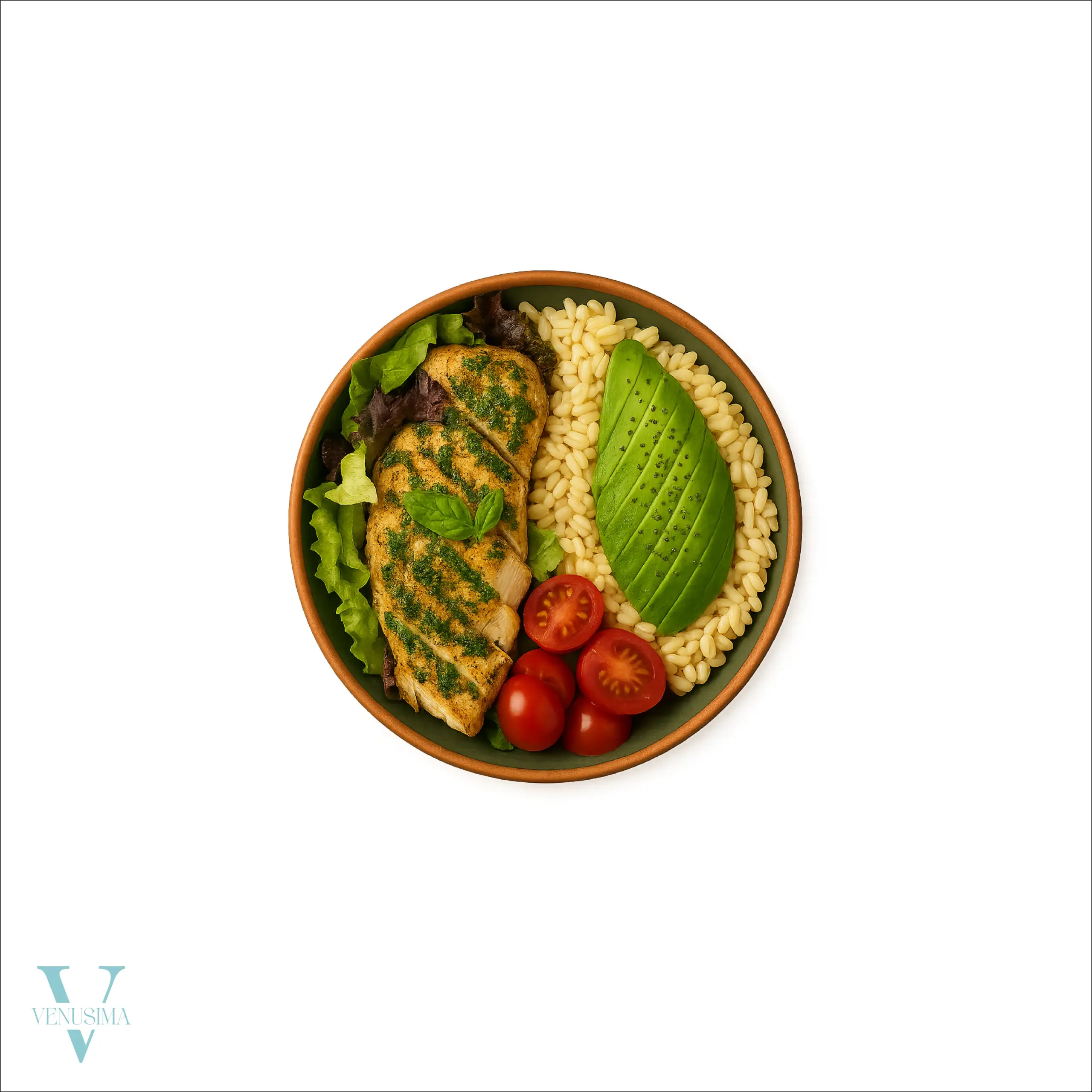 Un bol équilibré et gourmand qui marie fraîcheur et saveurs. Découvrez un délicieux poulet grillé tendre et parfumé, accompagné d’avocat crémeux, de tomates cerises juteuses, de salade croquante et de céréales fondantes. Une combinaison saine, colorée et nourrissante, parfaite pour un repas léger et savoureux.